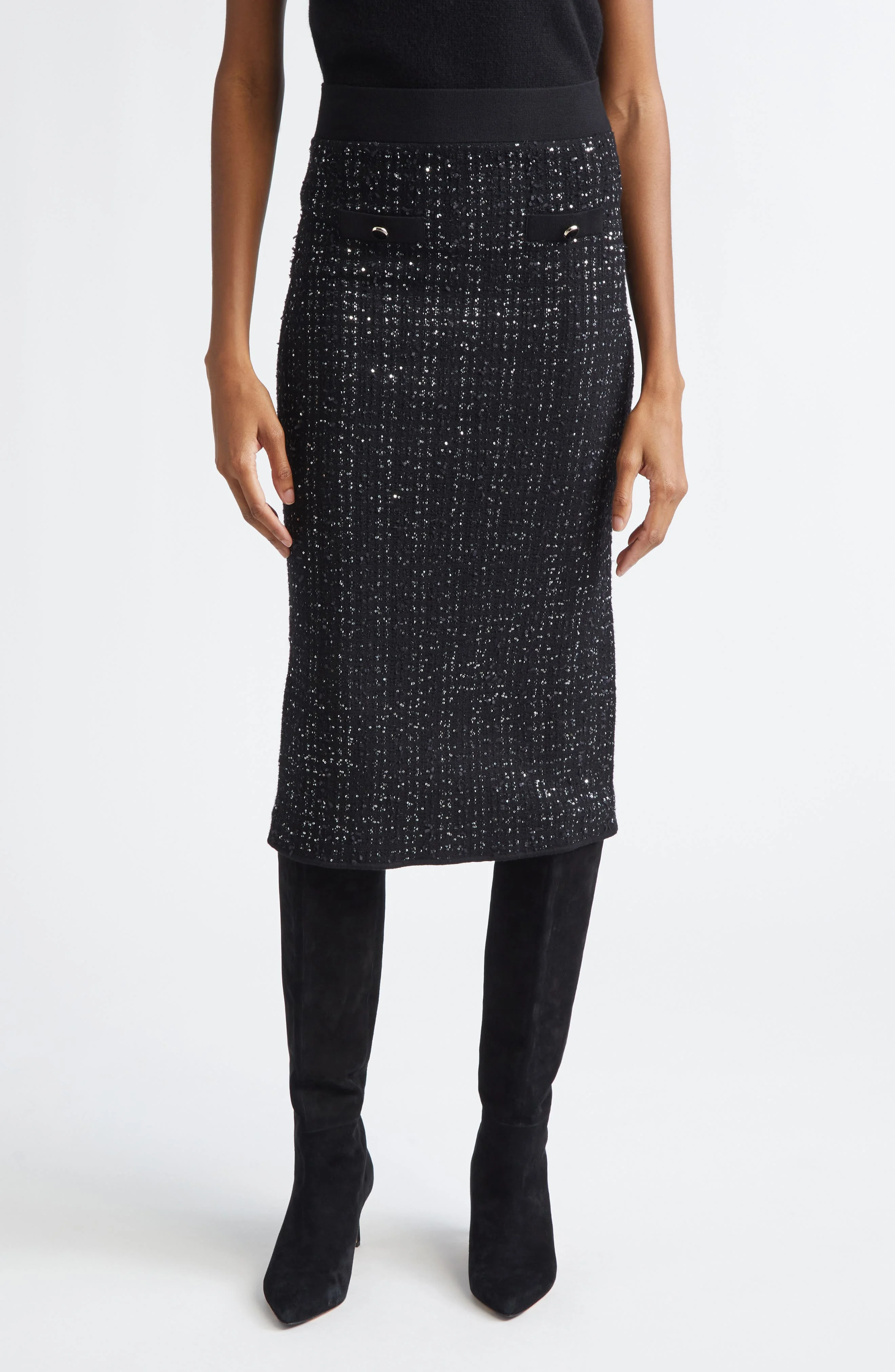 Veronica Beard Corbin Sequin Knit Pencil Skirt in Black at Nordstrom