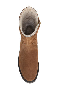 Simple details lend refined elegance to a staple bootie ground on a durable lugged rubber sole and available in leather or suede. 1 1/4" heel 7 1/2" shaft Side zip closure Leather upper and lining/rubber sole Imported