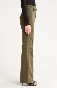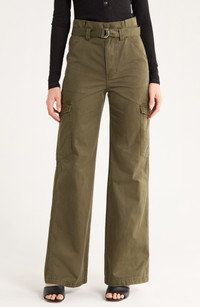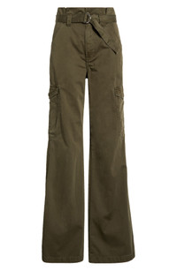 Make every day easy in these utilitarian pants fitted with cargo pockets and a defining ring belt. Leg-elongating wide hems complete this casual-cool silhouette. 34" inseam; 23" leg opening; 13" front rise (size 2) Removable ring belt Front slant pockets; cargo flap-patch pockets 100% cotton Machine wash, line dry Imported