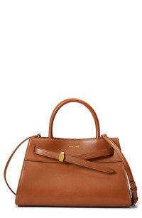 A belt with gleaming hardware cinches the structured profile of this scaled-down leather tote featuring a pair of rolled top handles and an optional crossbody strap for hands-free carry. 13"W x 8 1/2"H x 5 1/2"D 22 3/4" crossbody strap drop Magnetic closure Top carry handles; removable, adjustable crossbody strap Interior zip and wall pockets Structured silhouette with flat base and protective metal feet Lined Leather Imported
