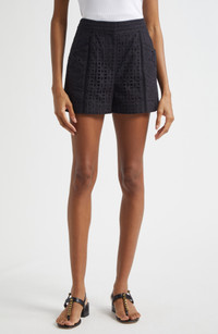 Veronica Beard Fabian Cotton Eyelet Shorts in Black at Nordstrom