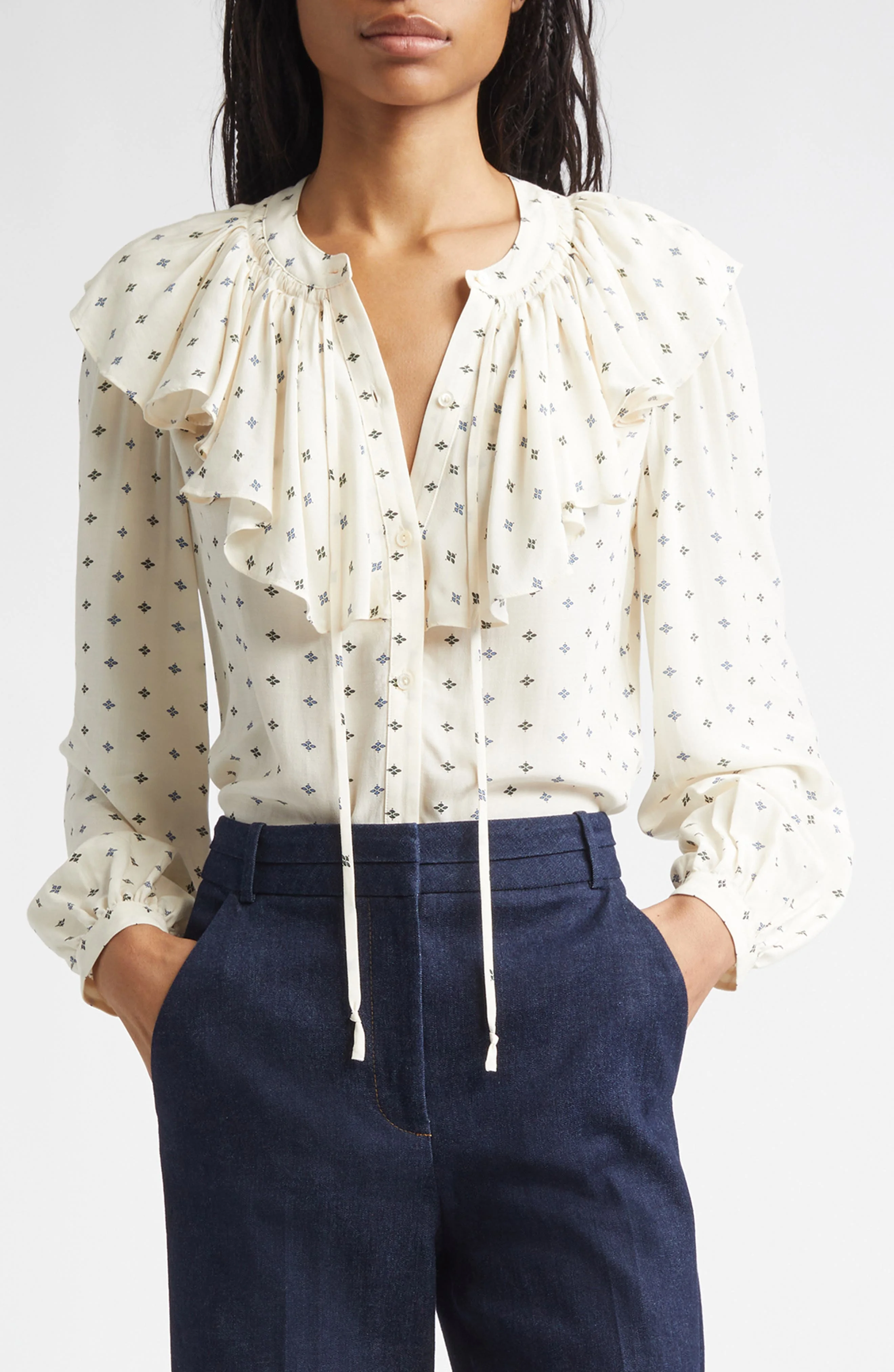 Veronica Beard Gomez Ruffle Print Shirt in Ecru Multi at Nordstrom