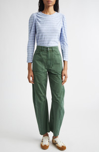 The style file is going big on these barrel-leg pants, and this pair, crafted from supersoft cotton is a winning way to own the look. Zip fly with button closure Front patch pockets; back patch pockets 100% cotton Machine wash, dry flat Imported