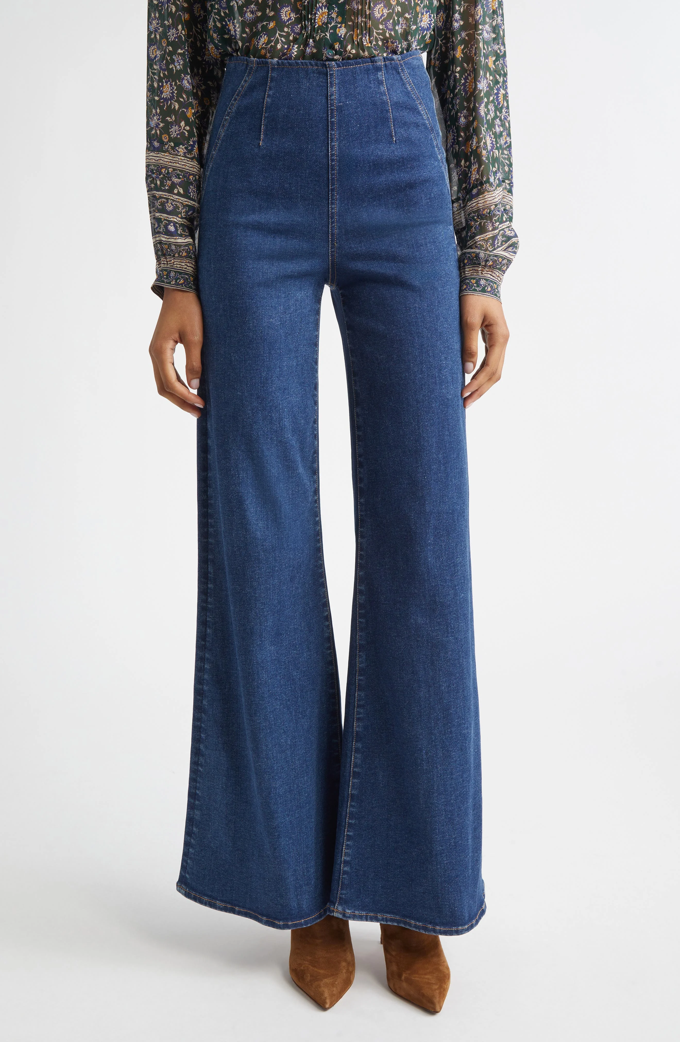 Veronica Beard Joplin Off-Duty High Waist Flare Jeans in Bright Blue at Nordstrom