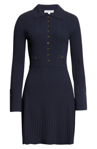 Veronica Beard Lauper Variegated Rib Long Sleeve Sweater Dress in Navy at Nordstrom