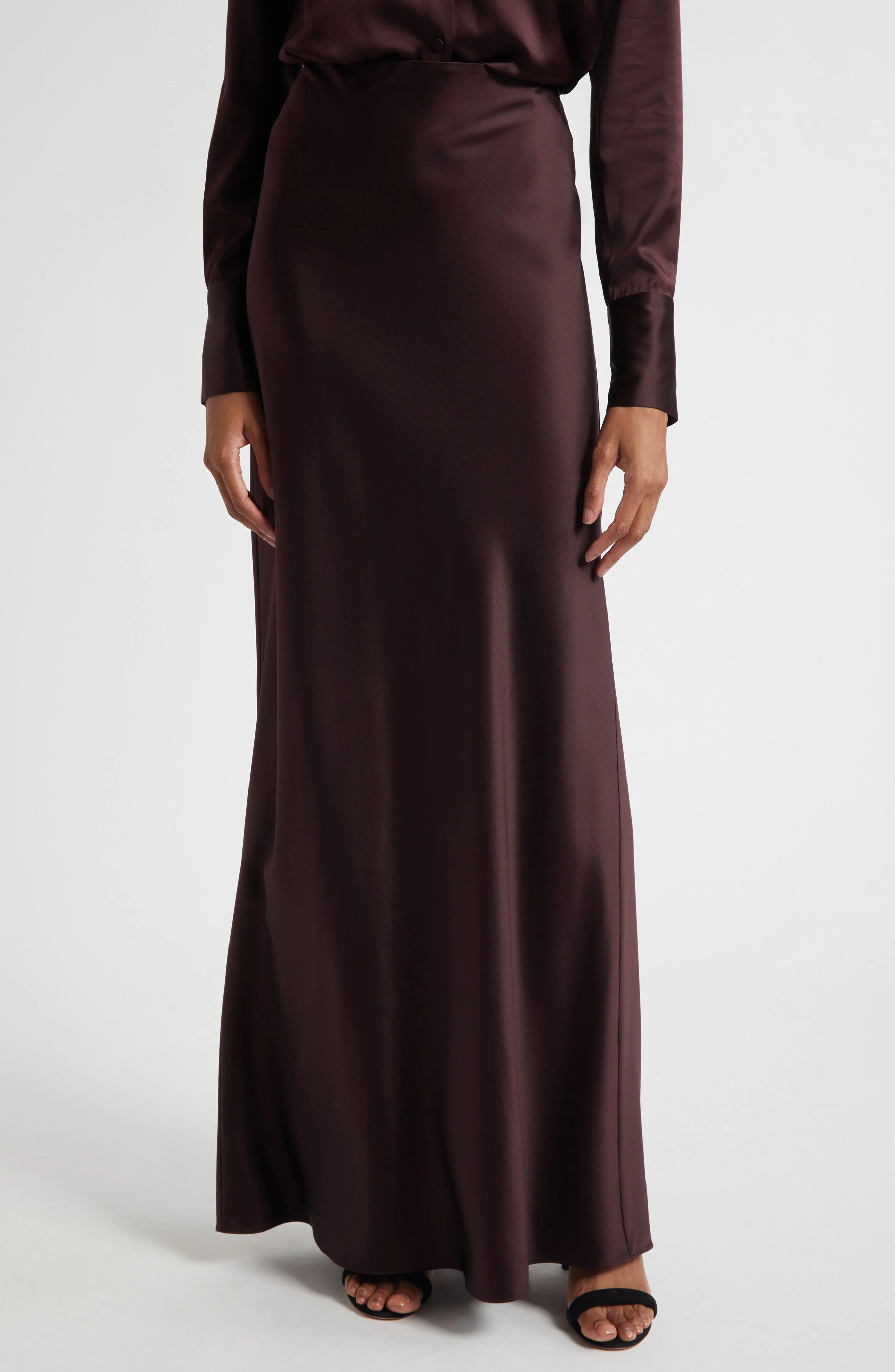 The skirt silhouette of the season comes through in a luxe silk-blend fabrication and an equally luscious hue. 53% silk, 35% viscose, 12% elastane Dry clean Imported