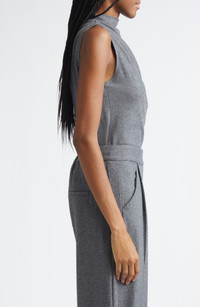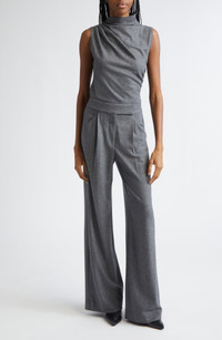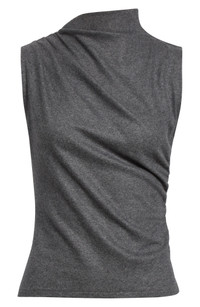 Strategic gathering at one shoulder lends elegant drape and twisted asymmetry to this sleeveless sweater that works beautifully into your layered look or stands out just as well on its own. Funnel neck Sleeveless 39% wool, 29% polyester, 29% viscose, 3% elastane Dry clean Imported
