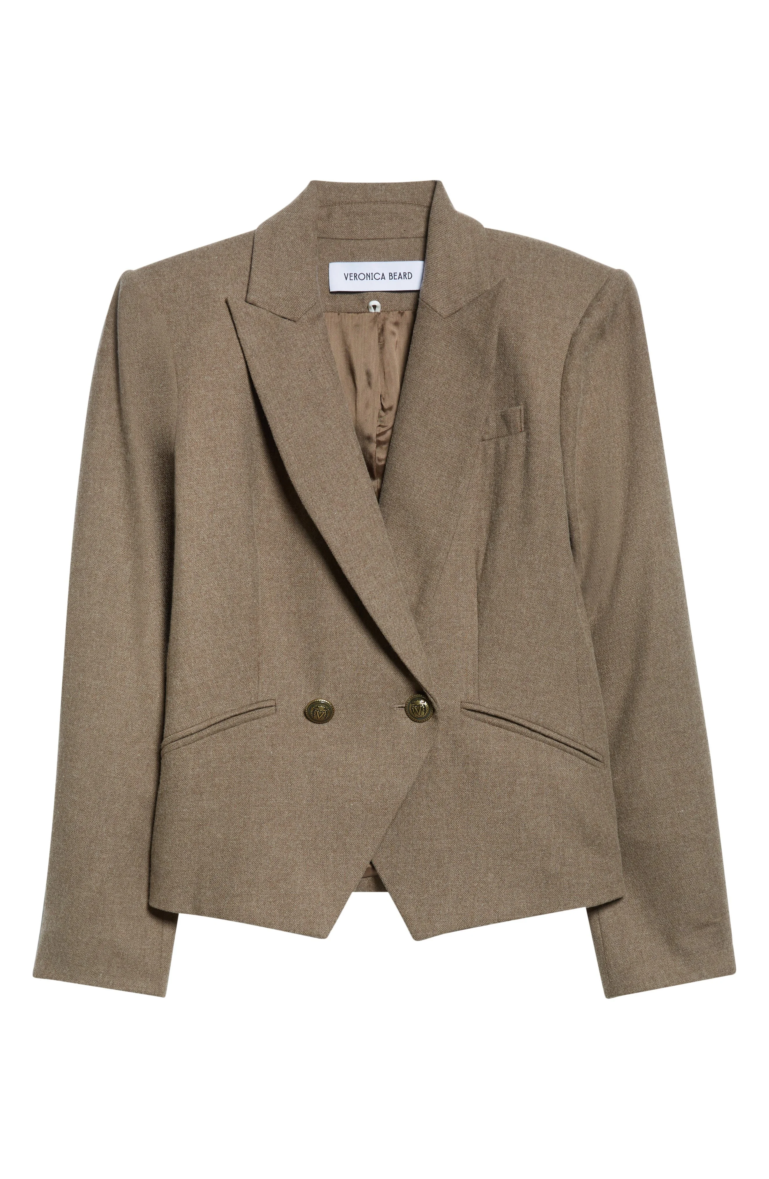 Lauded for layering versatility since its 2010 debut, Veronica Beard's beloved dickey jacket is refreshed for the season in this cropped version cut from an Italian stretch-wool blend. Crested buttons lend heritage character to this double-breasted cutaway blazer. Double-breasted button closure Peaked lapels Chest welt pocket; front welt pockets Five-button cuffs Back vent Satin lining Compatible with all Veronica Beard dickeys (sold separately) 34% polyester, 33% viscose, 32% wool, 1% elastane Dry clean Made in Italy
