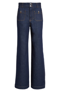 Get into a funky groove with these '70s-inspired jeans cut from premium nonstretch denim and enhanced with flared legs and a high-waisted cut. Zip fly with two-button closure Front button-patch pockets 100% cotton Machine wash, dry flat Made in the USA