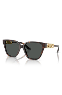Crystal-encrusted Medusa and Greek-key branding adorn the sculpted temples on these Italian-made sunglasses styled in a butterfly silhouette. 56mm lens width; 16mm bridge width; 140mm temple length 100% UV protection Acetate Made in Italy