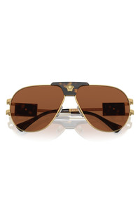 Gleaming Medusa logos punch up the shine on sleek pilot sunglasses crafted in Italy and designed for full-coverage sun protection. 63mm lens width; 12mm bridge width; 145mm temple length 100% UV protection Adjustable nonslip nose pads Metal Made in Italy