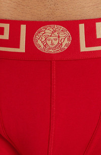 The fashion house's Greek key design and Medusa-head motif detail the waistband of these cotton trunks woven with a bit of comfy stretch. 94% cotton, 6% elastane Dry clean or hand wash, dry flat Made in Italy
