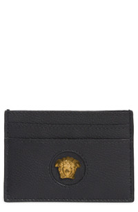 Medusa hardware adds iconic Versace style to this trim leather case with card slots on both sides and a center slip pocket for securing cash. Center slip pocket; four card slots Leather Made in Italy