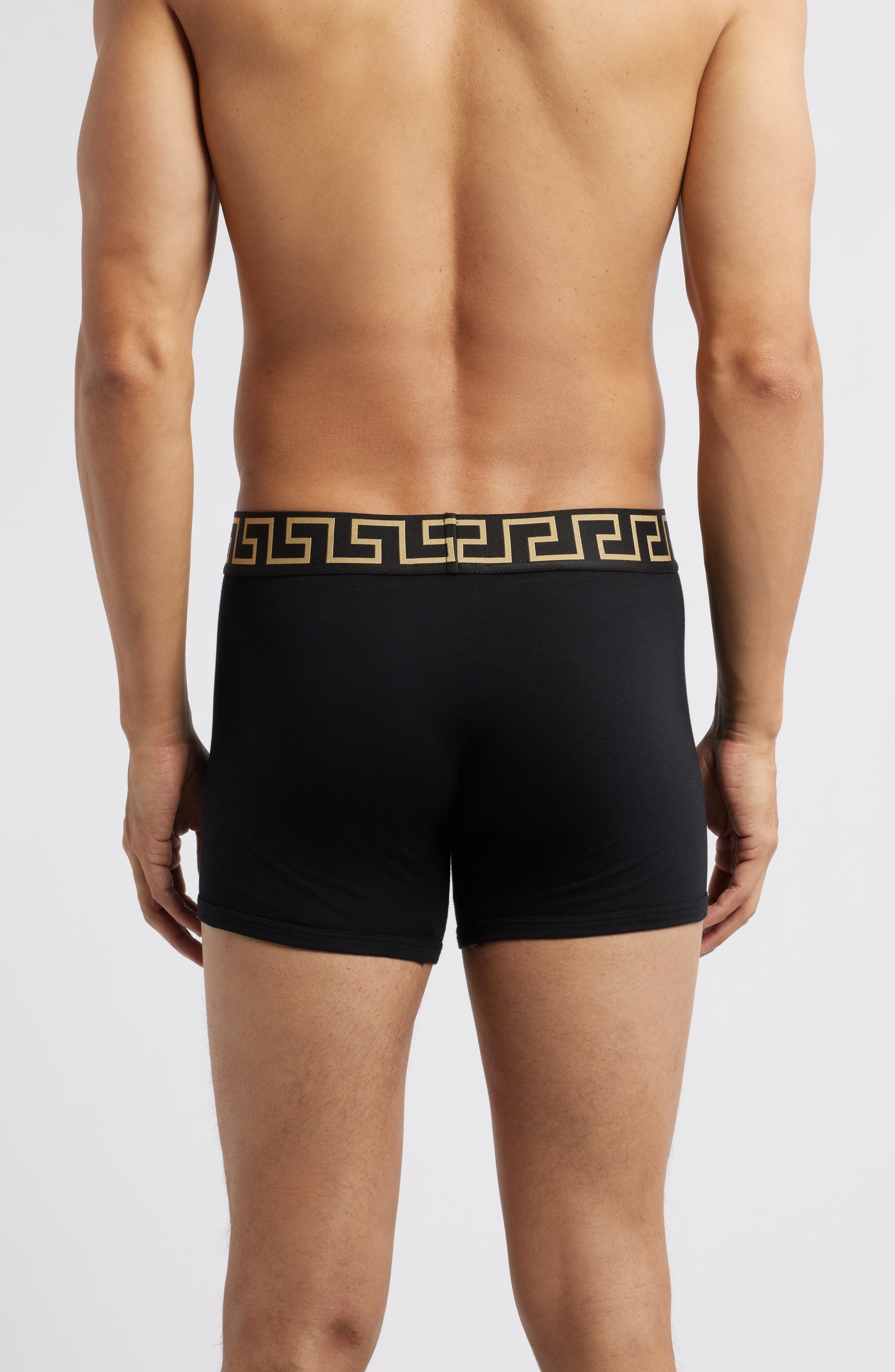 The fashion house's Greek key design and Medusa-head motif detail the waistband of this cotton boxer brief woven with a bit of comfy stretch. Pack of two boxer briefs No fly 94% cotton, 6% elastane Dry clean or hand wash, line dry Imported