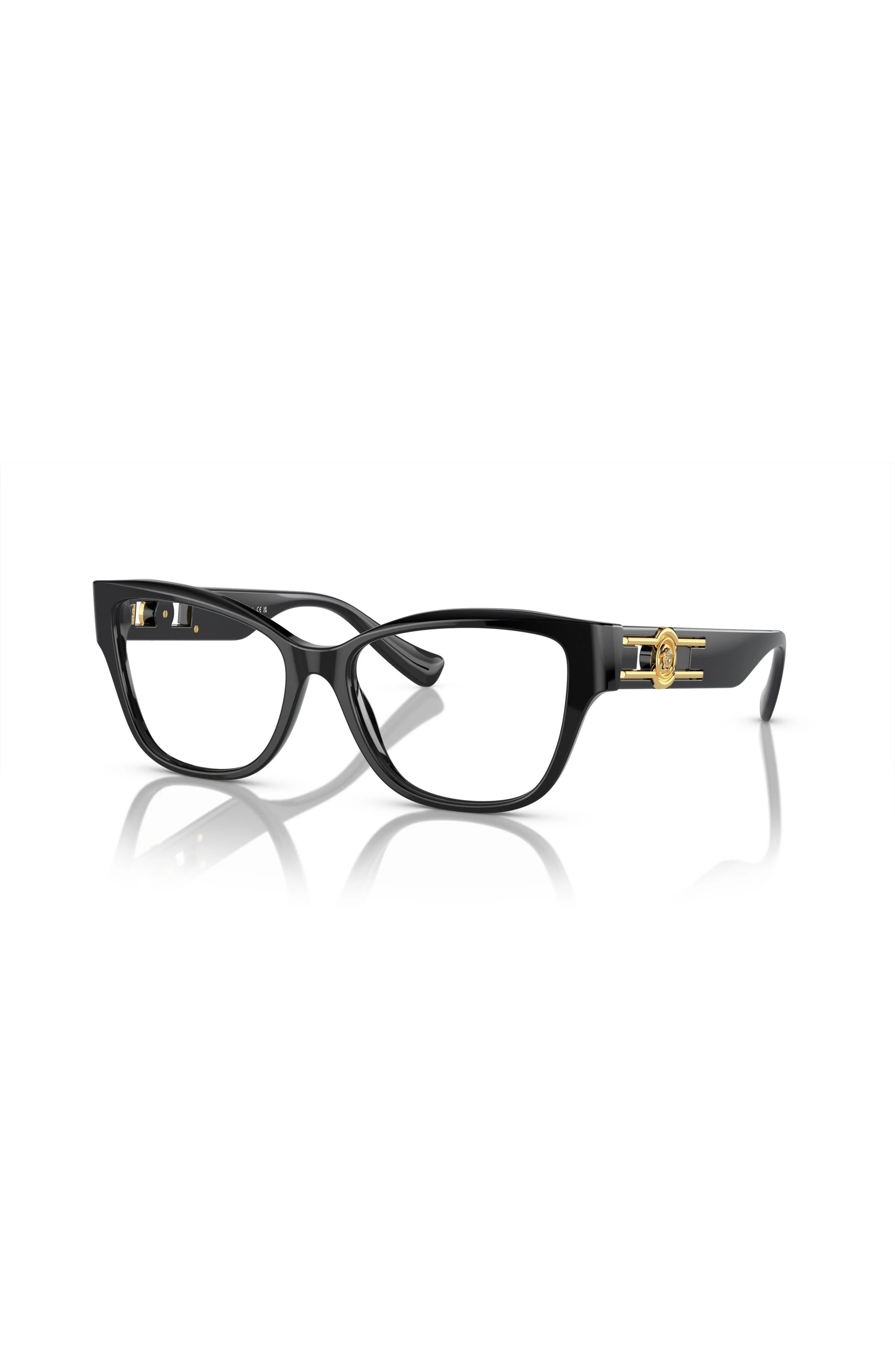 The renowned Versace eyewear brand features contemporary shapes and the iconic emblem of the brands own mythology, the Medusa. 54mm lens width; 16mm bridge width; 140mm temple length Frame Shape: Pillow Frame Material: Acetate Frame Type: Full Rim High Bridge Fit Prescription - compatible Fitted with nonoptical demo lenses Case or microfiber pouch included.