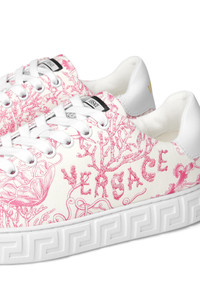 Set on a Greek-key sole with a signature Medusa patch, this coral-covered sneaker speaks to the brand’s penchant for mythological motifs. Lace-up style Textile upper and lining/synthetic sole Made in Italy Designer Shoes