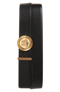 Versace Biggie Medusa Leather Belt in Black/Versace Gold at Nordstrom