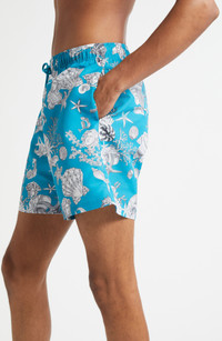 Versace Coral Theater Swim Trunks in Dark Sea Green Silver Grey at Nordstrom