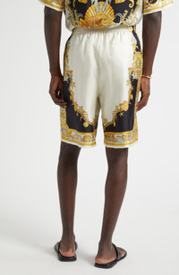 Versace Coral Theatre Silk Shorts in Ivory Black Gold at Nordstrom