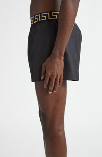 Versace Greca Medusa Swim Trunks in Black Gold Greek Key at Nordstrom