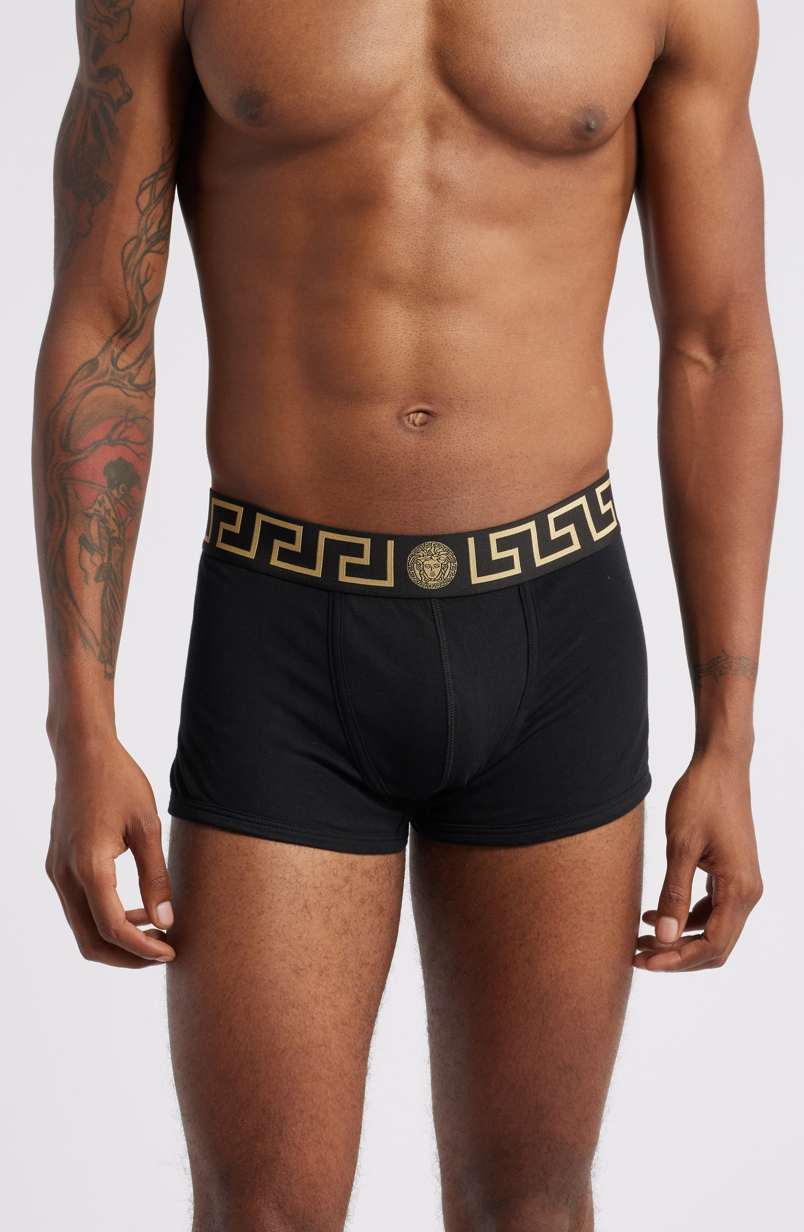 Two of the fashion house's iconic motifs—the Grecca Greek key design and the Medusa head—detail the waistband of these low-rise stretch-cotton boxer briefs. 94% cotton, 6% elastane Machine wash, dry flat Made in Italy