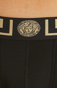 The fashion house's Greek key design and Medusa-head motif detail the waistband of these cotton trunks woven with a bit of comfy stretch. 94% cotton, 6% elastane Dry clean or hand wash, dry flat Made in Italy