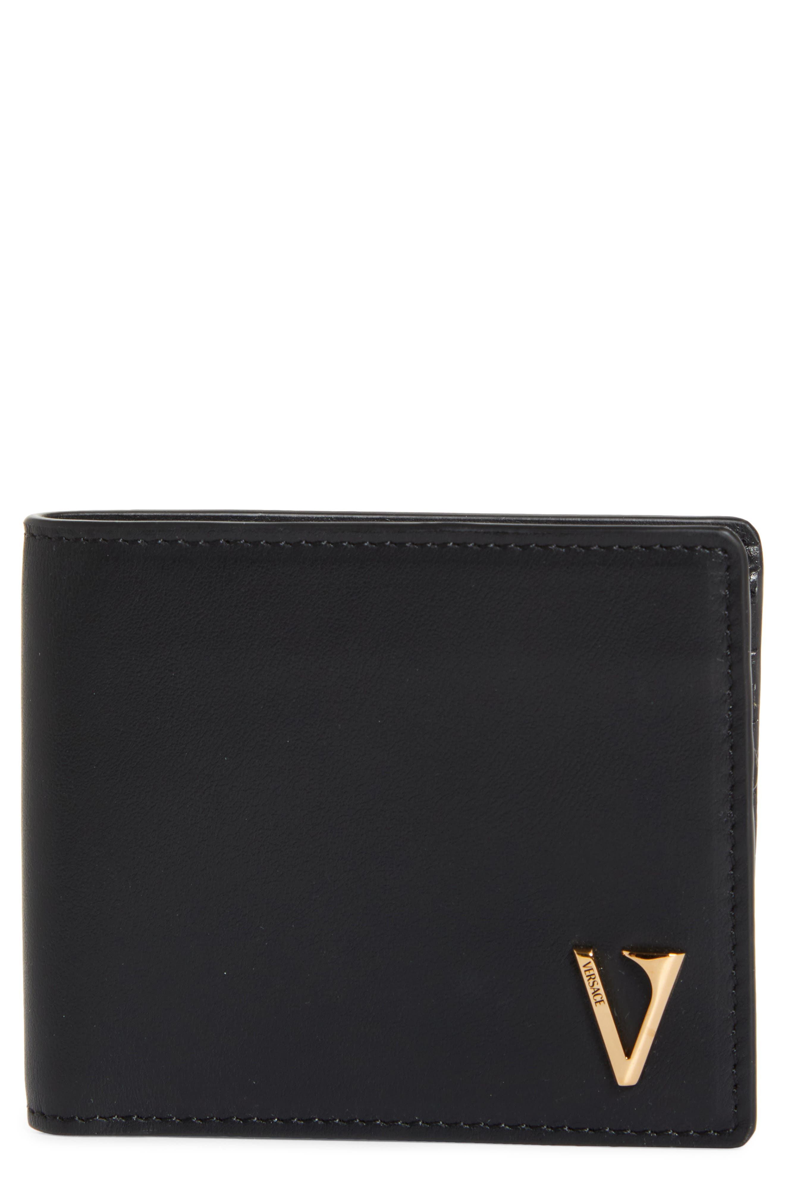 Versace V-Emblem Leather Bifold Wallet in Black-Versace Gold at Nordstrom