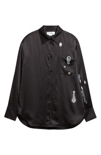 A placed crystal print lends a trompe l'oeil effect to this pajama-inspired button-up shirt made from fluid silk satin. Front button closure Spread collar Long sleeves with button cuffs Chest patch pocket 100% silk Dry clean Made in Portugal Designer Clothing