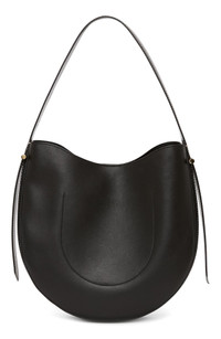 Gleaming hardware and topstitching offer thoughtful finishing touches to this slouchy leather hobo that combines minimalist elegance with everyday functionality. The spacious interior holds all your essentials, making it perfect for daily use as well as special occasions. Magnetic closure Shoulder strap Interior wall pocket Leather Made in Italy Designer Handbags