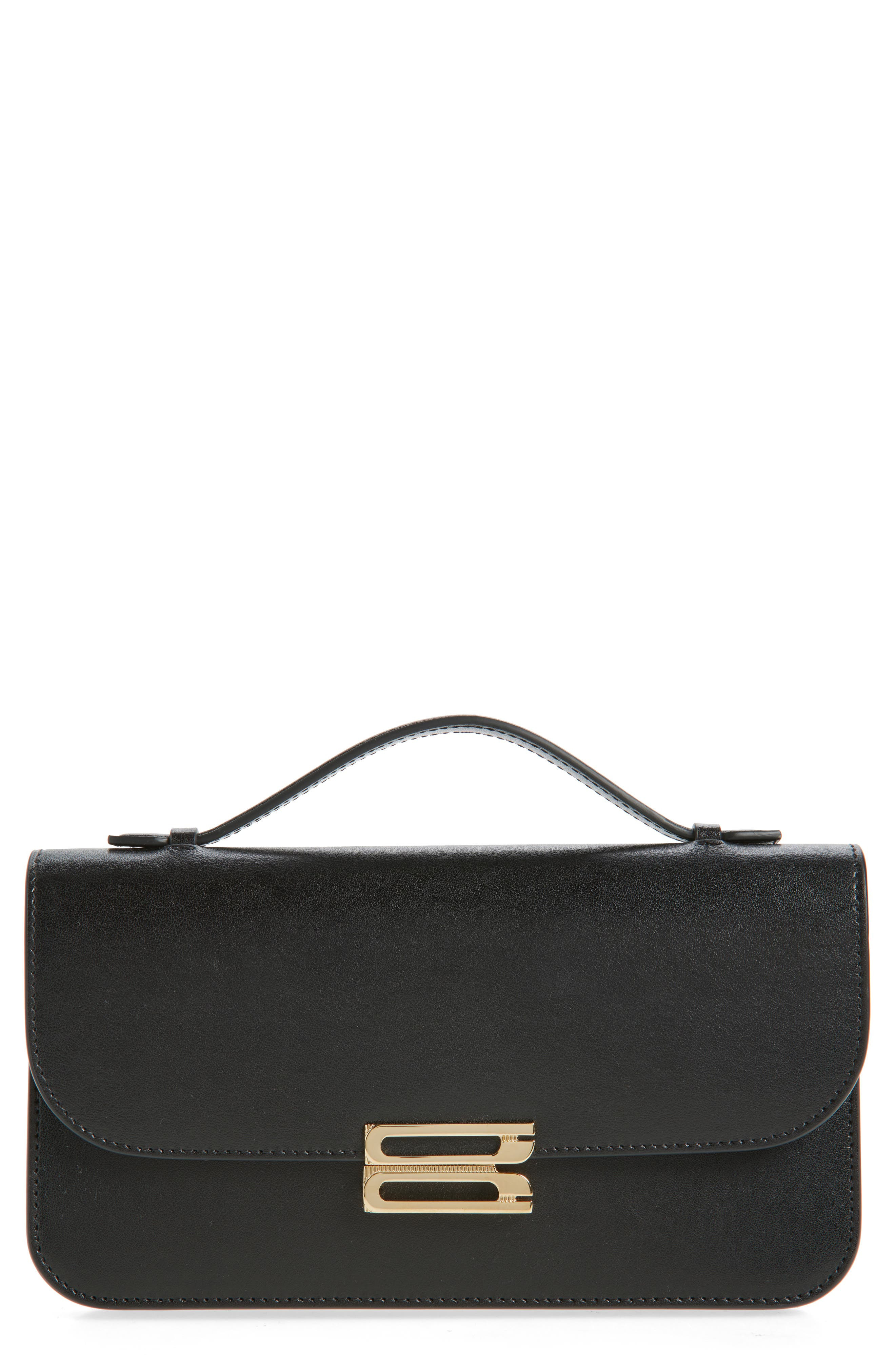Victoria Beckham Midi Dorian Leather Top Handle Pouchette Bag in Black at Nordstrom