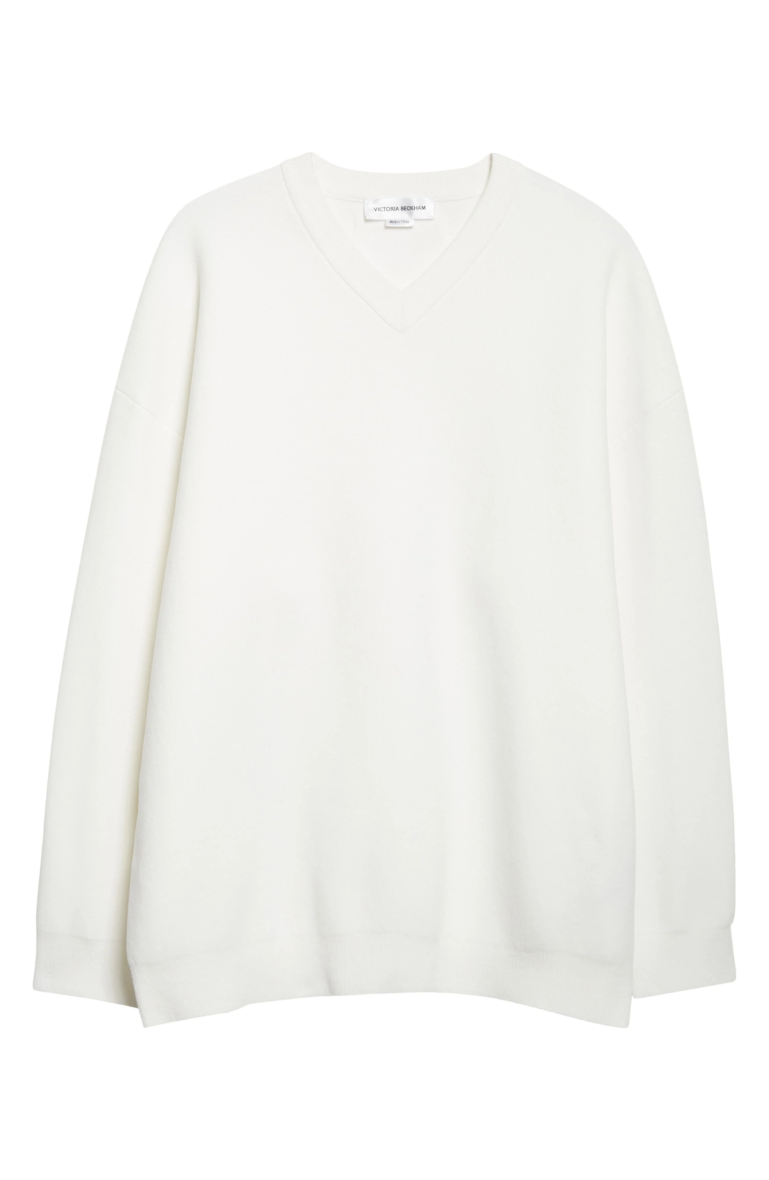 Victoria Beckham Relaxed Fit V-Neck Chenille Sweater in White at Nordstrom