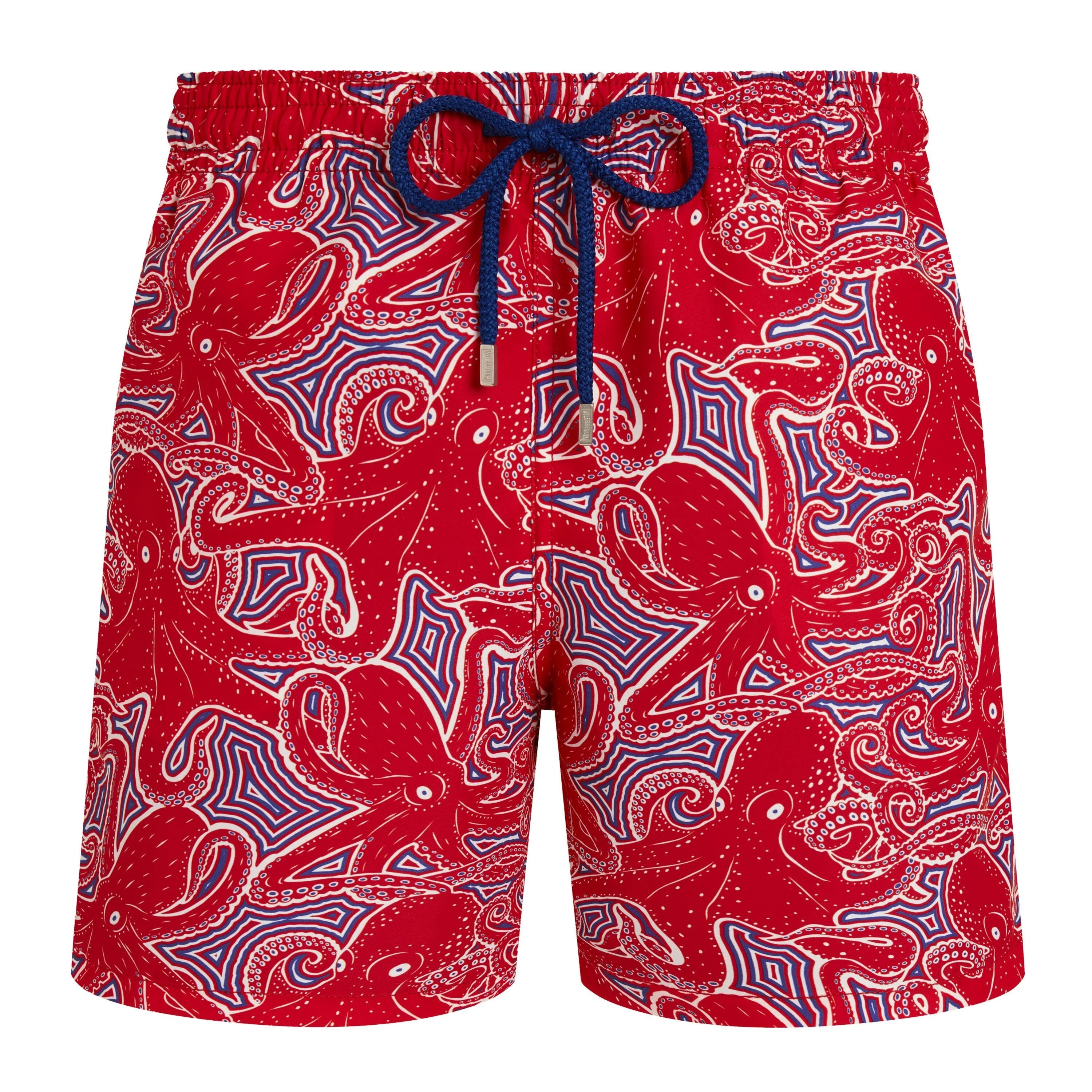 Make a splash with optical flair in the Moorea Hypnoctopus swim shorts, where swirling tentacles create a hypnotic, art-inspired seascape. Crafted from recycled fabric with a comfortable elastic waistband and engraved-tipped drawstring, they’re designed to turn heads from poolside lounger to late-night rooftop. *Sizes run small, size up if unsure. Please see our size guides for reference. Elastic waistband swim trunks with drawstring and Zamac tips engraved Vilebrequin Side pockets Hand-placement of back pocket for perfect visual alignment with swimwear print Two back eyelets allow water to drain and avoid swim trunks from ballooning when emerging into water Fully lined with water-resistant mesh lining (100% recycled polyamide) Side leg length in size M: 15.6" Inseam length in size M: 5,9" The model is 6'1" and wears a M size Men Swim Shorts Hypnoctopus Men Swim Shorts