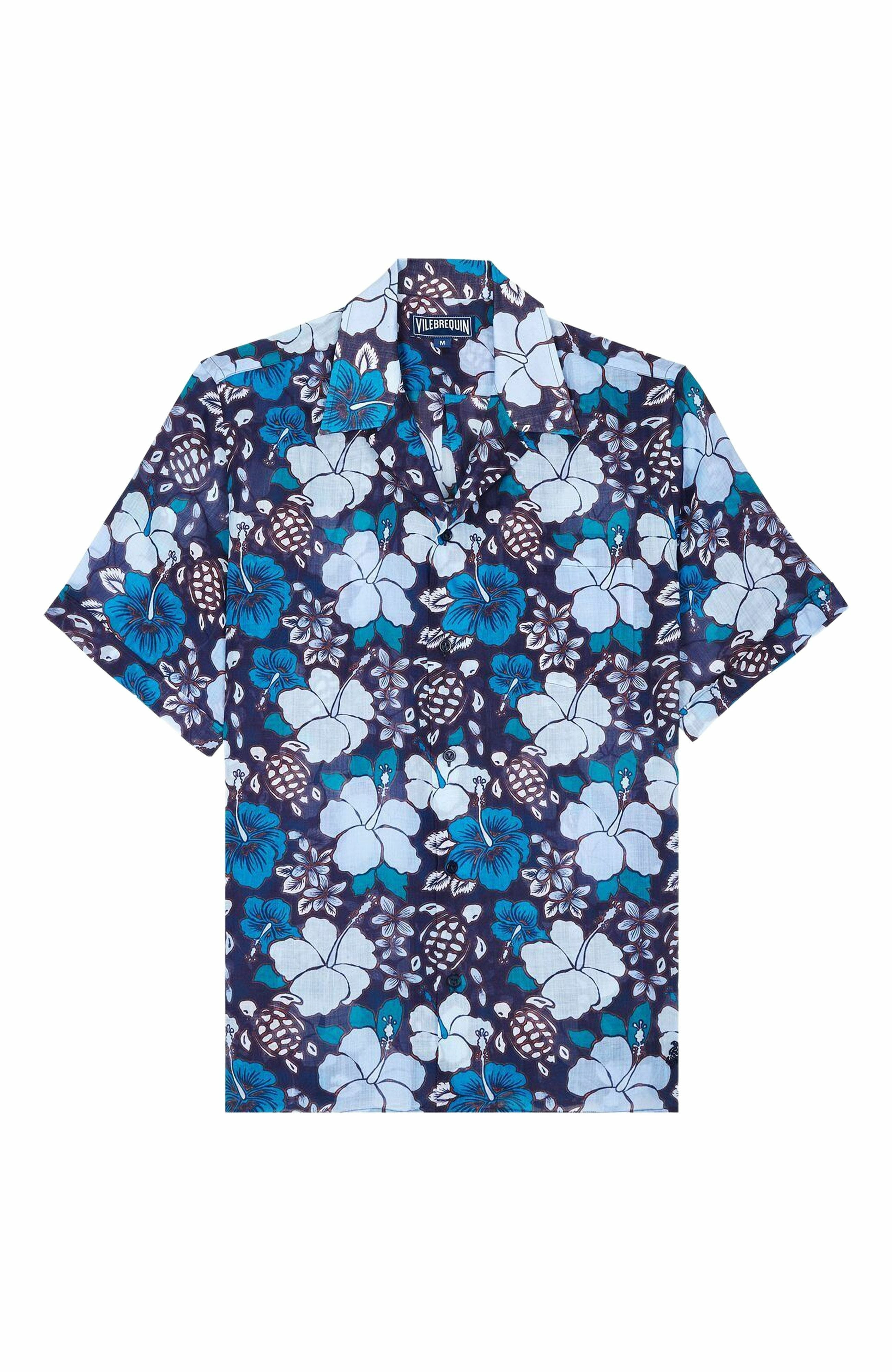 A classic bowling shirt suitable for any occasion, crafted from soft ramie fabric and featuring short sleeves to keep things cool Bowling shirt Short sleeves with turned back cuffs Chest pocket Two slits on each side Embroidered turtle tone on tone on the bottom left Button fastening Middle back Length for a size M: 29.13" Men Shirt Men Shirt Tropical Turtles 100% Ramie