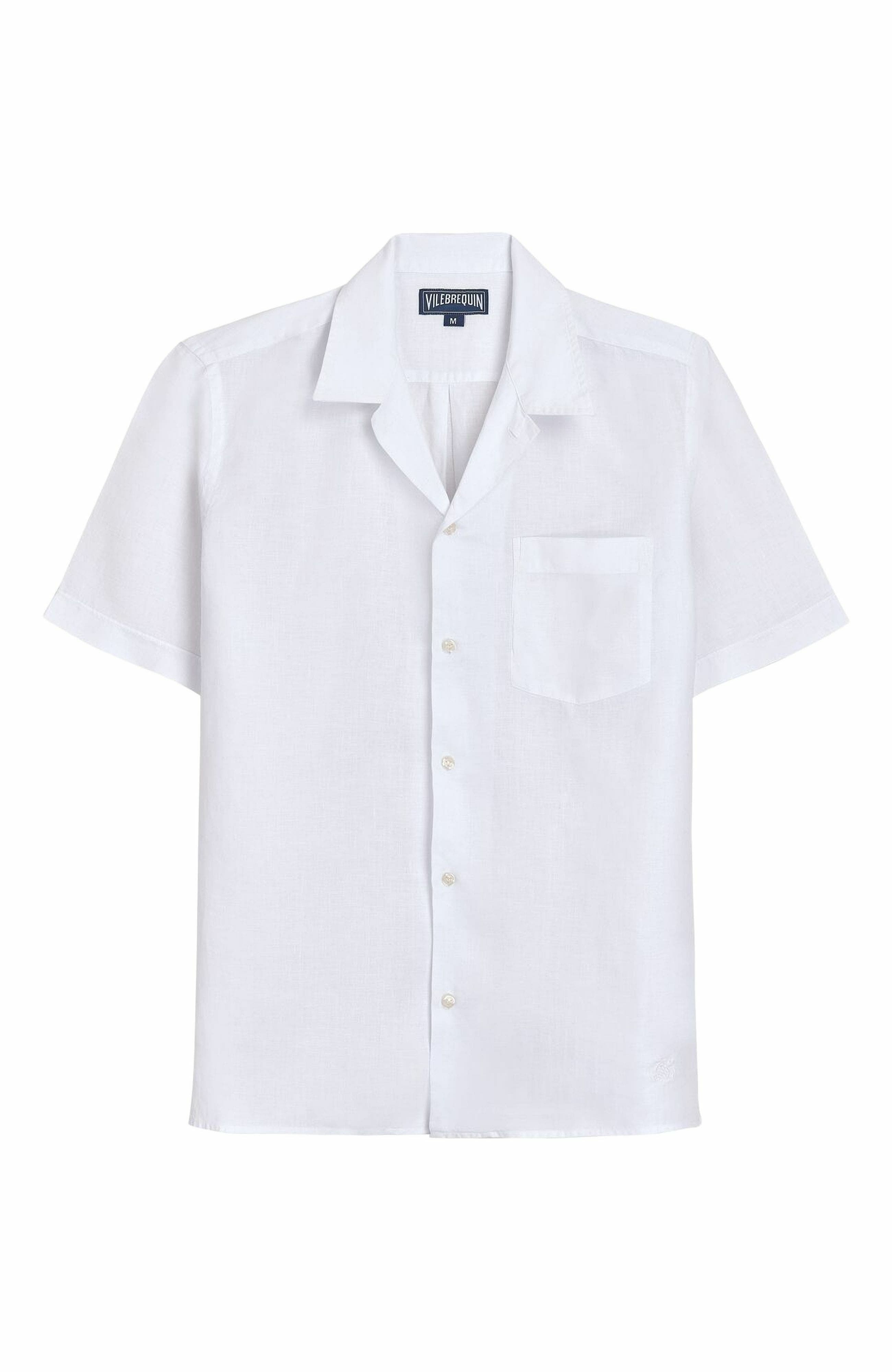 Vilebrequin Men's Linen Solid Bowling Shirt in Blanc at Nordstrom