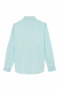 Cover up in style in this sophisticated linen overshirt that doubles as a summer jacket. The iconic tone-on-tone embroidered turtle on the left hip offers a subtle enhancement. Relaxed fit button down Linen shirt Natural dye color Long Sleeve Chest pocket Tone on tone embroidery turtle Logo on left hip Men Shirt Men Shirt Natural dye 100% linen