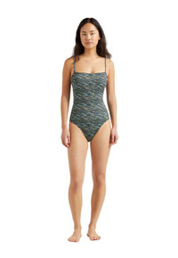 An edgy swimsuit just made for lounging by the pool sipping an elegant cocktail. The sophisticated pearl print brightens any occasion and recycled polyamide and elastane offer the perfect fit. Printed One-piece swimsuit with high back Curved neckline with silicone trim inside for a better support Removable and ajustable straps for more swimming comfort Removable cups The model is 68.8" tall and wears a size S Tortoise Vilebrequin detail on back Women One-piece Swimsuit Pearl Women One-piece Swimsuit 82% recycled polyamide 18% elastane