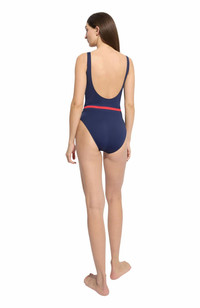 Embrace 80s style with this women’s one-piece recycled polyamide and elastane swimsuit. The navy blue and red striped belt accentuates the waist, while the deep back neckline adds allure80s Style|Navy blue and red striped printed belt to mark waistband Navy blue and red striped printed belt to mark waistband Lined with removable padding Deep back neckline Women One-piece Swimsuit Women One-piece Swimsuit Solid -Vilebrequin x Ines de la Fressange