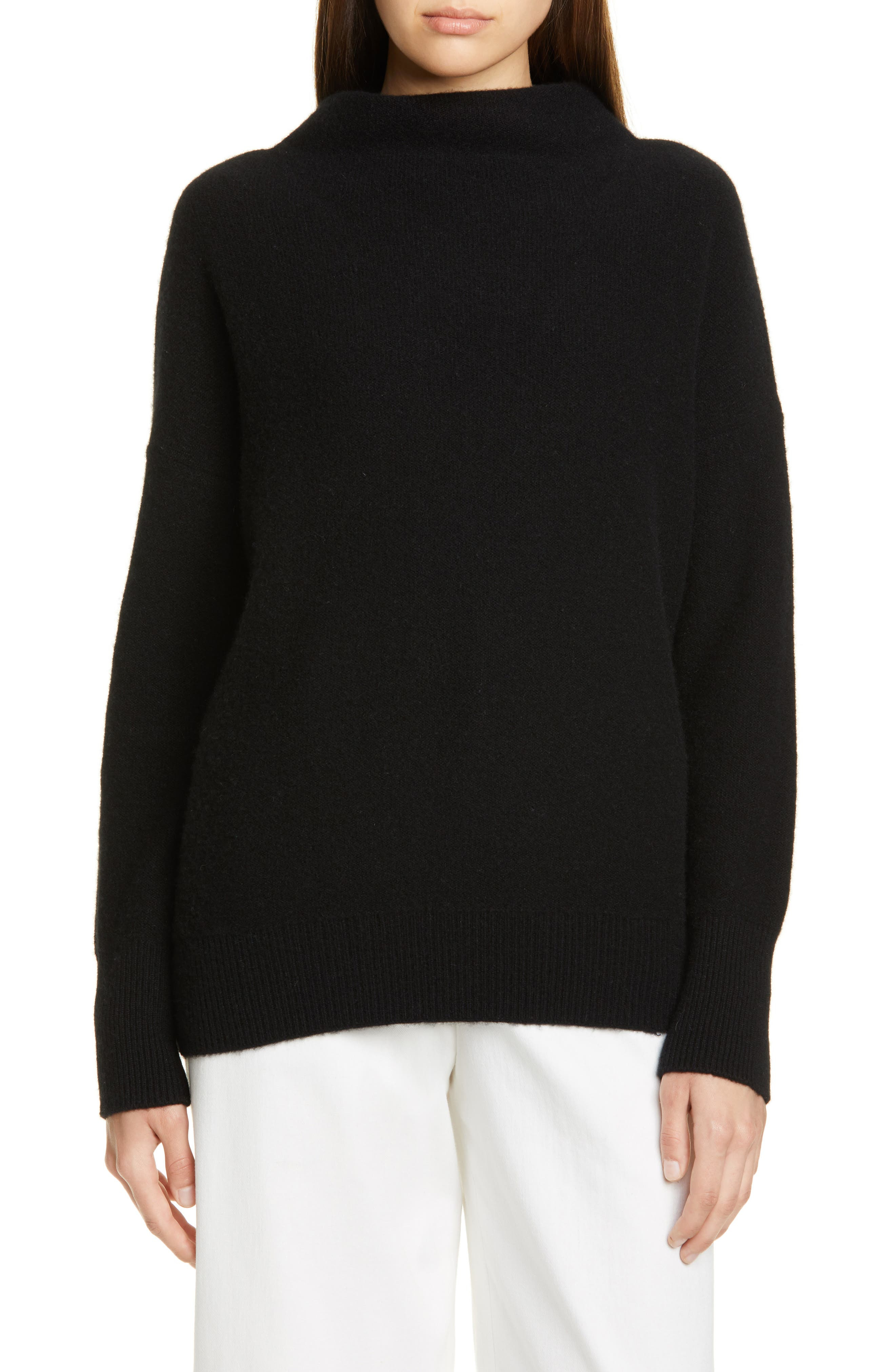 The softest cashmere is also structured enough to form a seamless funnel neck atop this super-cozy sweater styled with dropped shoulders and wide ribbed bands. 25" length (size medium) Exclusive retailer Funnel neck Long sleeves Ribbed cuffs and hem 100% cashmere Dry clean or hand wash, dry flat Imported Women's Clothing