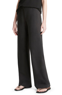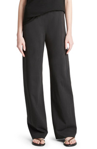 Move with ease wearing these soft cotton-blend pants designed with a high waist and punctuated with wide legs. 32" inseam; 21" leg opening; 11" front rise; 16 1/2" back rise (size Medium) Pull-on style 48% cotton, 26% rayon, 26% linen Dry clean or hand wash, line dry Imported