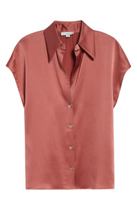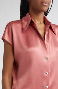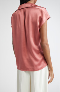 Vince Cap Sleeve Gathered Back Short Sleeve Silk Button-Up Shirt in Peony Wood at Nordstrom