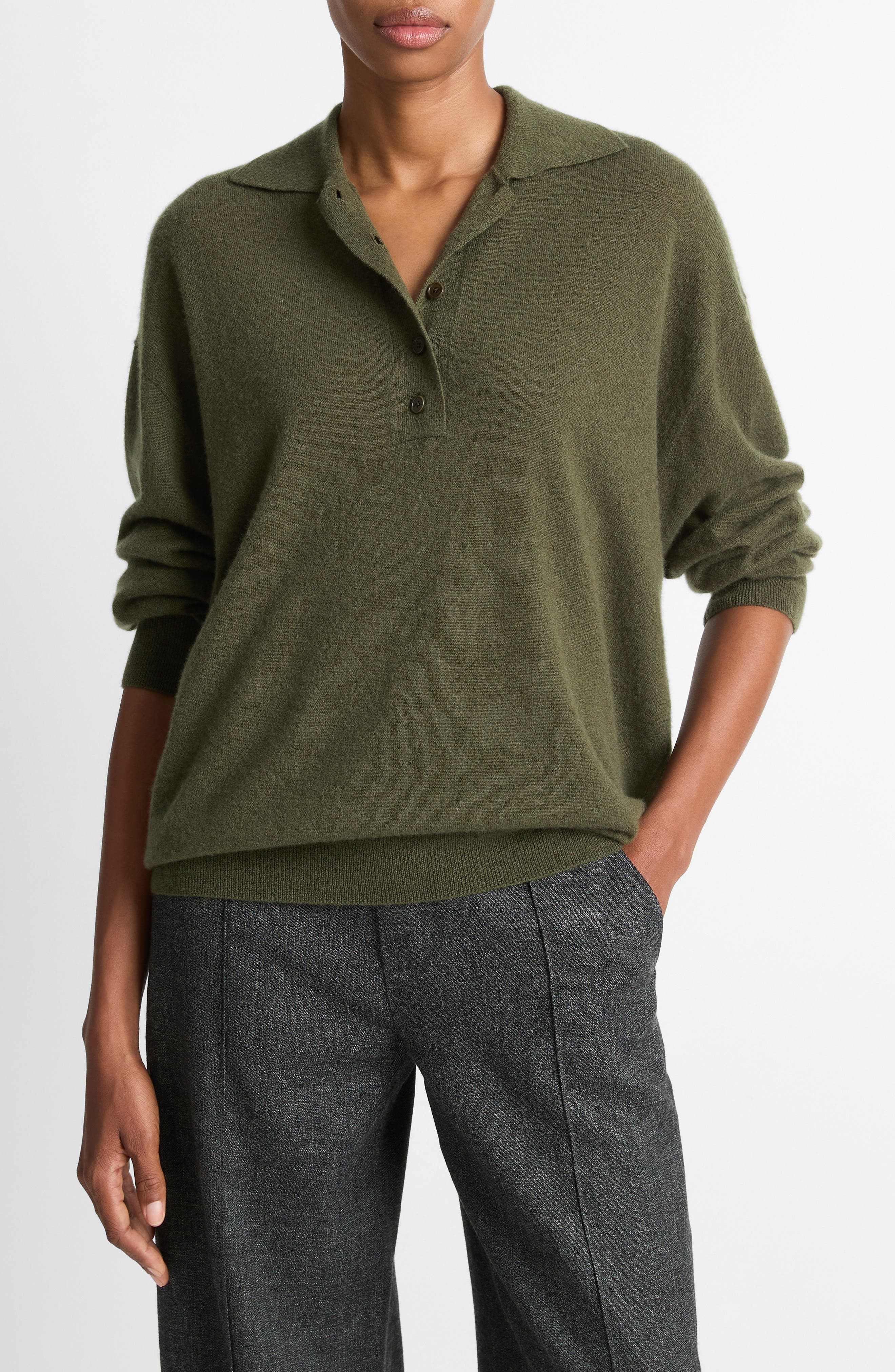 Vince Cashmere & Silk Polo Sweater in Herba at Nordstrom
