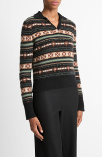 Vince Fair Isle Cashmere Polo Sweater in Cacao/malachite Comb at Nordstrom