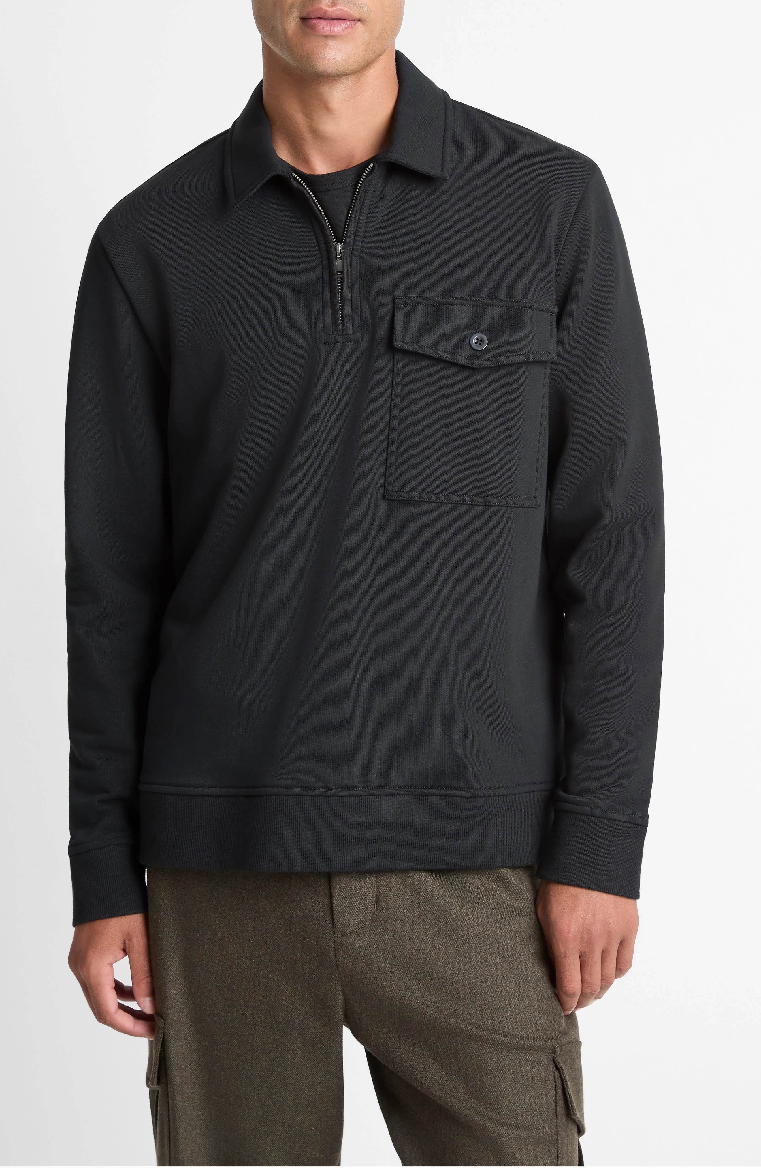Vince French Terry Quarter Zip Pullover in Black at Nordstrom
