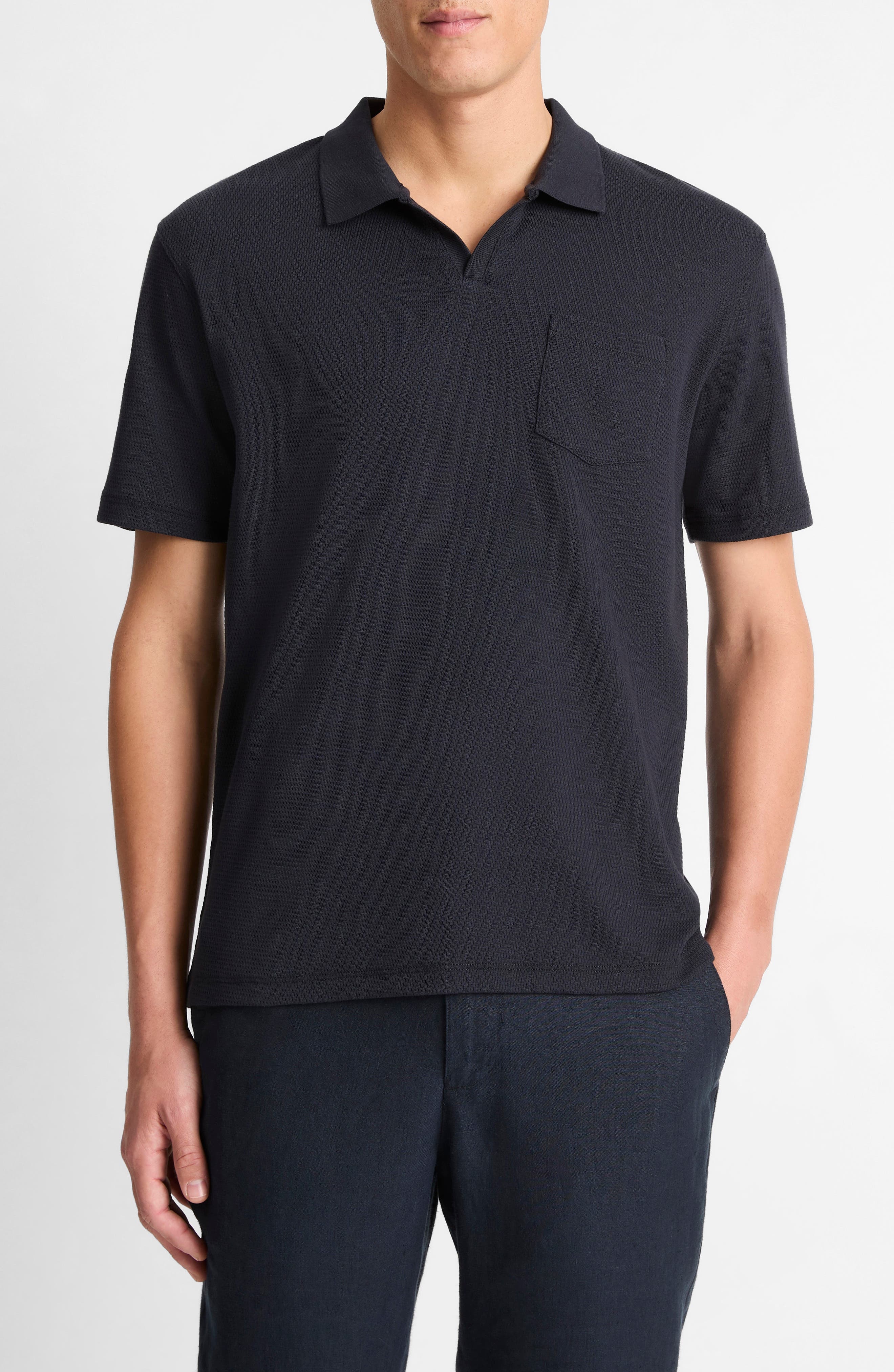 Breathe easy—this open-stitch polo delivers all the airflow plus a handy chest pocket for whatever life (or happy hour) throws your way. Johnny collar Short sleeves Chest patch pocket 60% cotton, 40% polyester Machine wash, tumble dry Made in Peru
