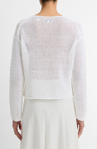 Loosely knit organic-cotton blend yarns give this sweater both its slouchy, drapey fit and a semisheer look with a soft, airy feel. Boat neck Long sleeves 75% organic cotton, 25% polyamide Hand wash, dry flat Imported