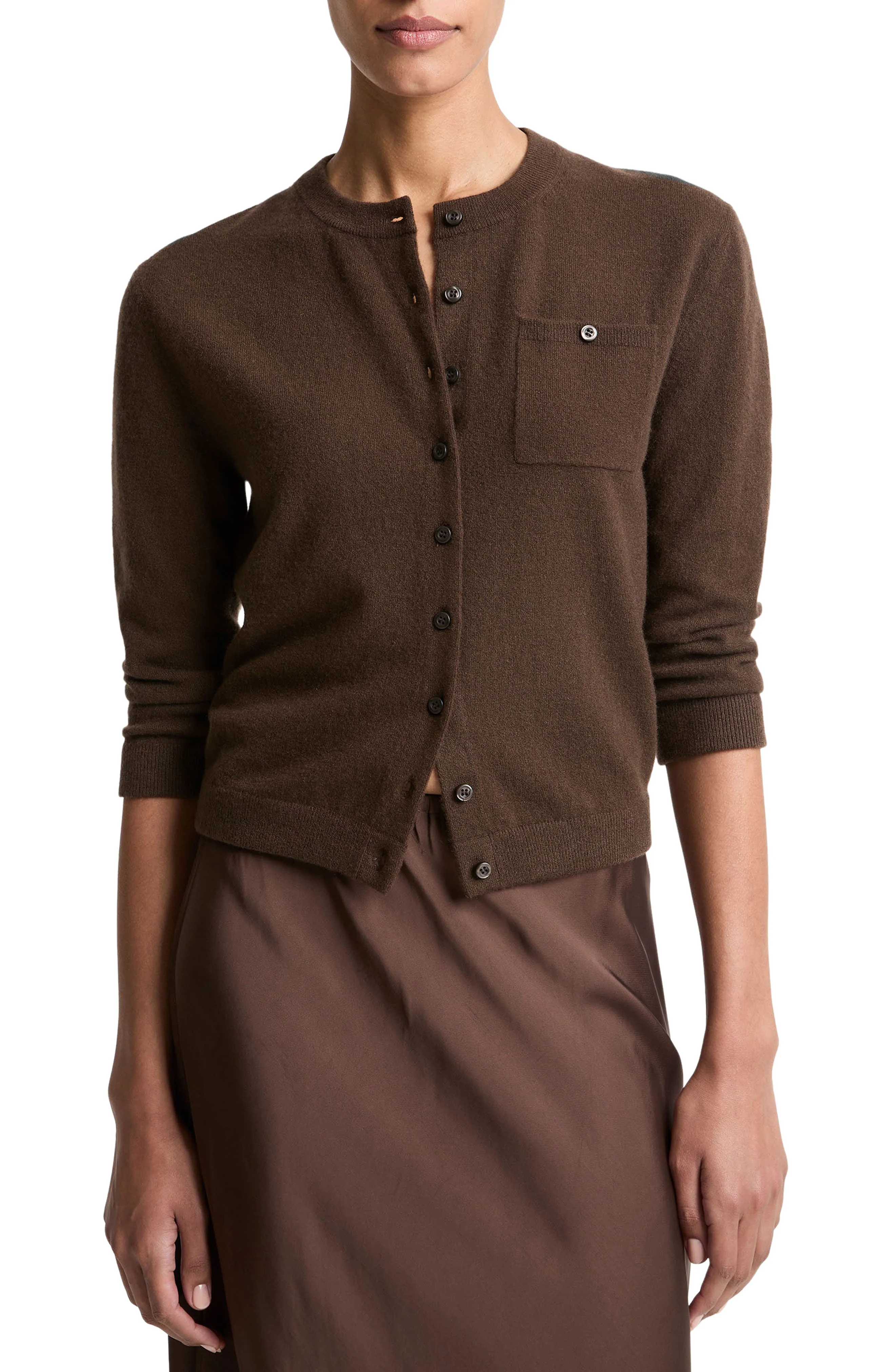 Vince Pocket Wool & Cashmere Blend Cardigan in Dark Bark at Nordstrom