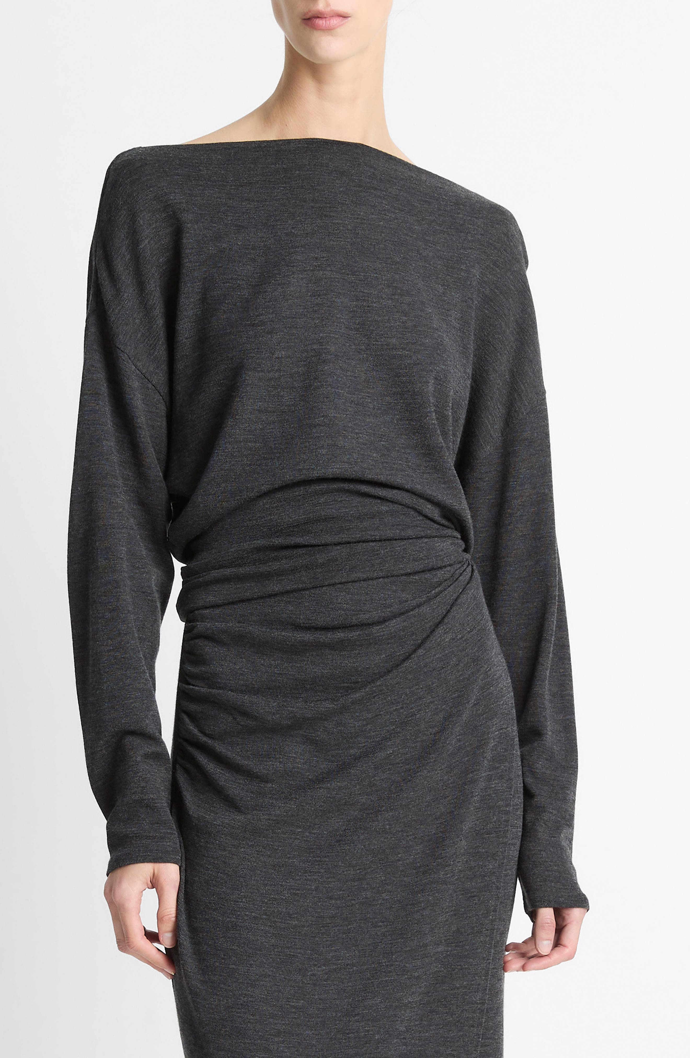 Vince Ruched Drape Top in Dark Heather Grey at Nordstrom