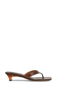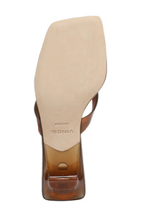 Throw your look back to the '90s in this nostalgic slip-on designed with a jelly-like strap and lofted by a lucite kitten heel. 1 1/4" heel Synthetic upper/leather lining and sole Imported
