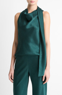 Vince Sleeveless Scarf Satin Top in Juniper at Nordstrom