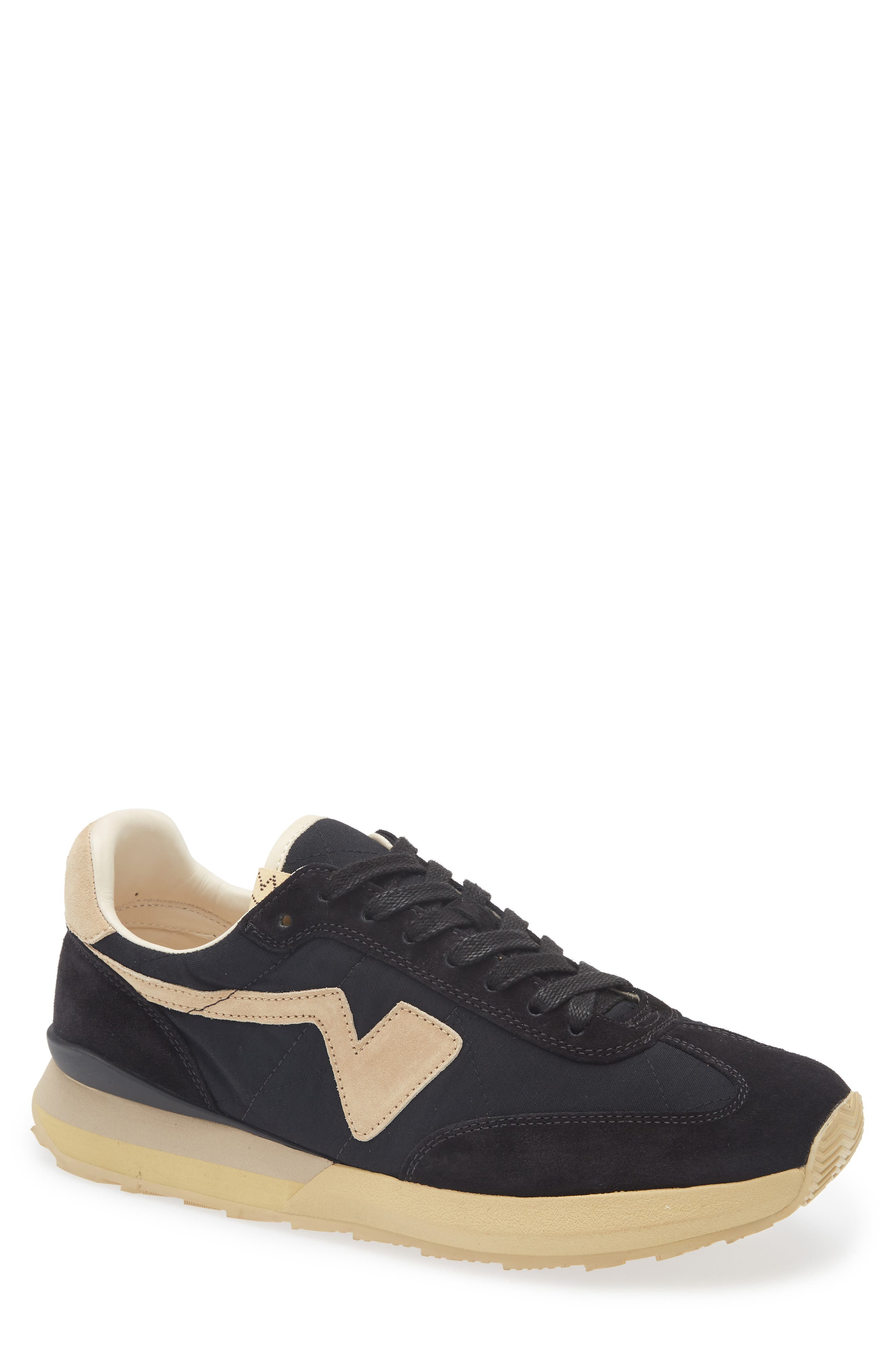 Old-school and modern styles collide in this low-top sneaker that layers Italian suede over Japanese textiles with uneven dyeing that celebrates every uniqueness and imperfection. A leather-covered cork insole molds to your foot for a custom, comfortable fit, while a grippy Vibram® sole provides optimal traction and support. Lace-up style Removable insole Leather and textile upper/leather lining/rubber sole Imported Designer Shoes Asian & Pacific Islander Owned/Founded
